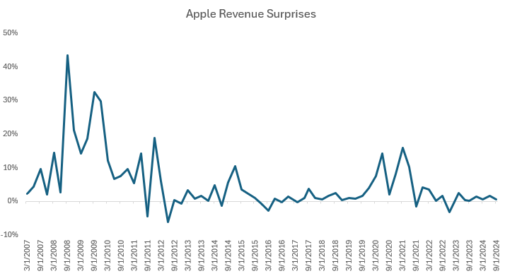 There’s an excellent historical analogy to this: the iPhone. Once upon a time, Apple had massive revenue beats similar (but nowhere near as big!) to what you’re seeing today when they launched the iPhone. That surprise has gotten smaller over time.