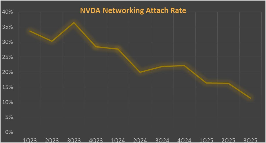 I think that’s all fine, but the actual open question from this earnings result was about networking—specifically, what is happening with the networking attachment rate? Its a drastic decline as a percentage of datacenter revenue.