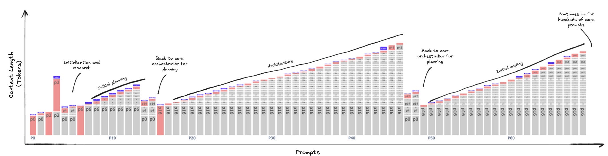 If you’re so visually inclined, here’s a diagram of a Claude code context window being compacted over and over. Another way to think about this is that it is an identity for a compute cycle; once the task is finished, it is transferred to slower memory and continues.